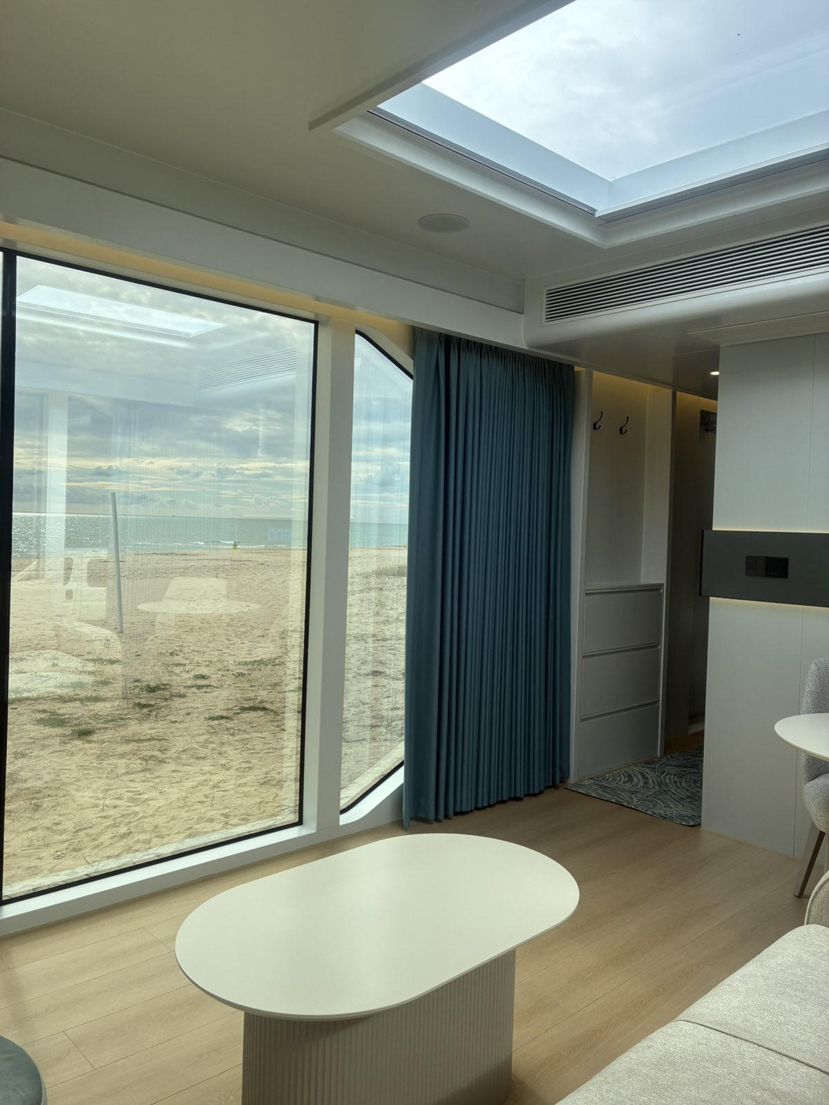 С площ от 40 кв.м., всяка капсула разполага със спалня с двойно легло, всекидневна с разтегателен диван и домашно кино, както и баня с хидромасажен душ. Интелигентните системи за управление на осветление, климатизация и сигурност се контролират дистанционно чрез voice control, а панорамните прозорци откриват невероятна гледка към плажа на Албена и природен резерват Балтата.